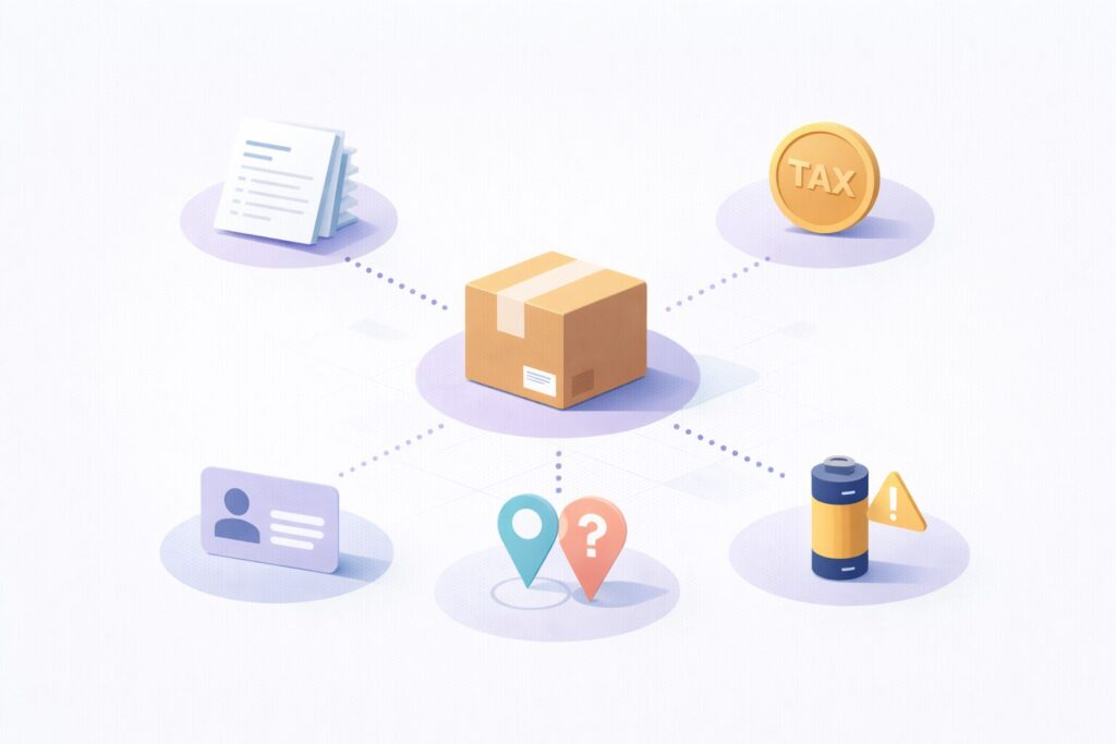 この記事では、まず何を確認して、どこに問い合わせて、どんな書類(インボイスやKYC)を用意すれば最短で前に進むのかを、越境ECの現場目線でガッツリまとめます。