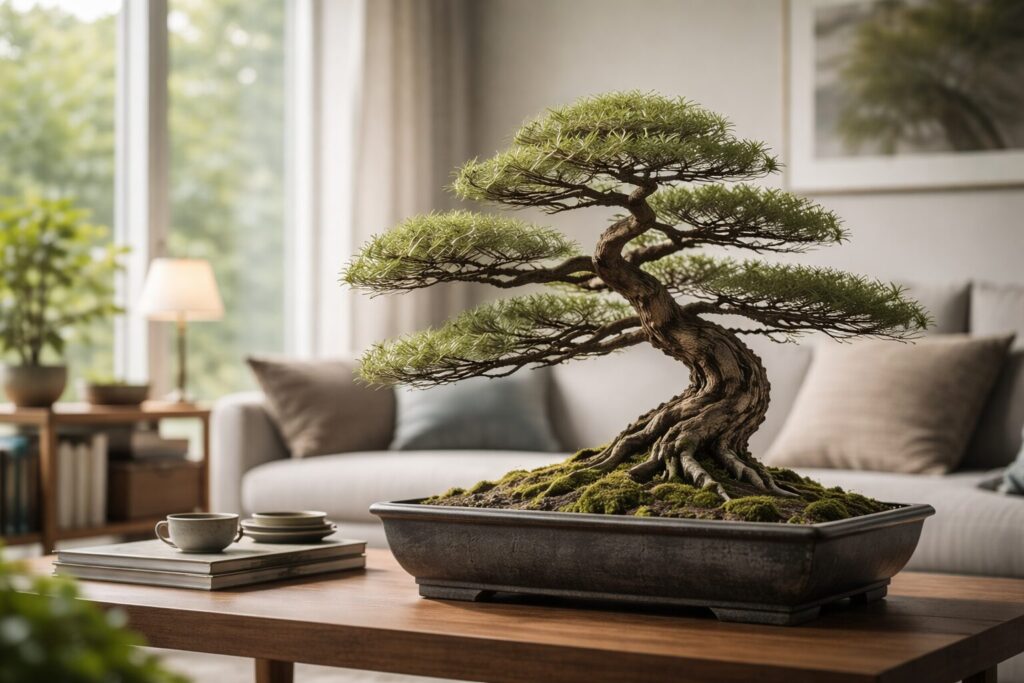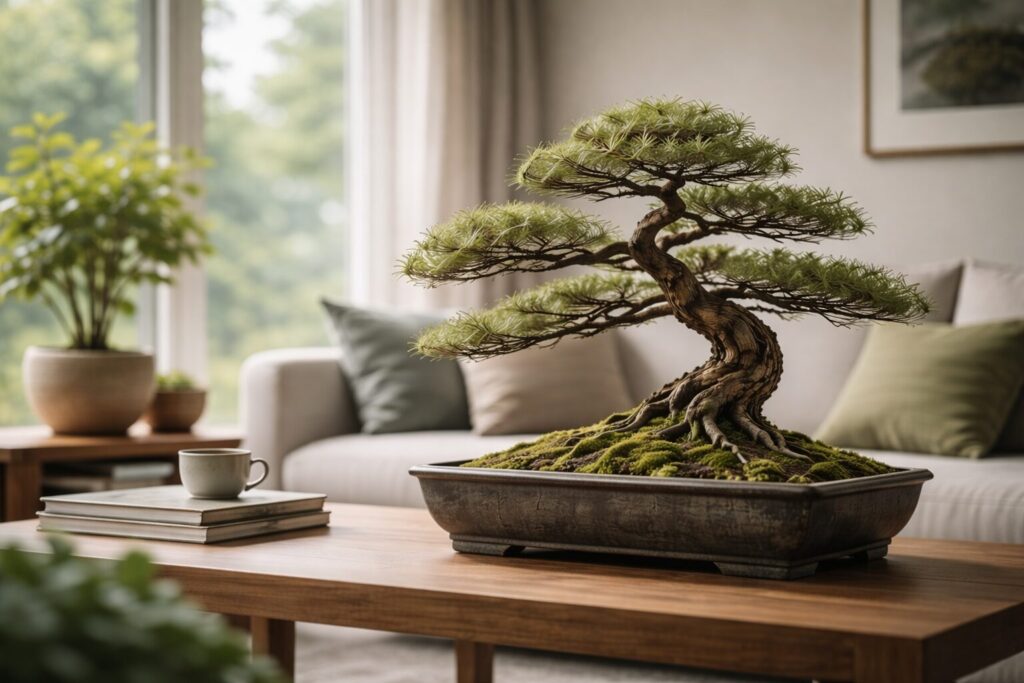 たとえば欧米の部屋づくりの文脈だと、観葉植物の延長じゃなくて“空間の主役”として盆栽が置かれます。