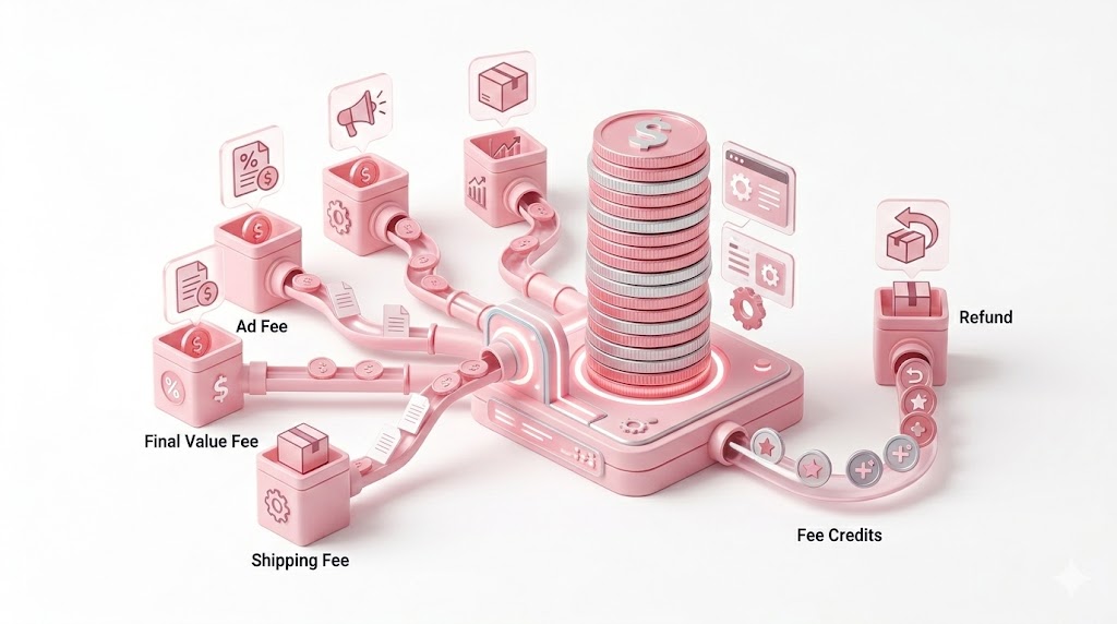 eBayは手数料や税代行徴収が先に引かれて着金することがあるので、入金だけ見ていると売上が過小になったり、手数料が漏れたりします。
