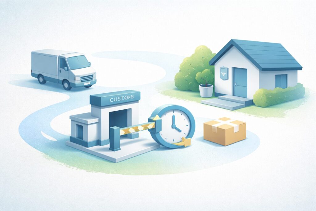 税関前なら書類や申告内容の確認が必要な場合があり、税関後なら単純に支払い待ちのこともあります。
