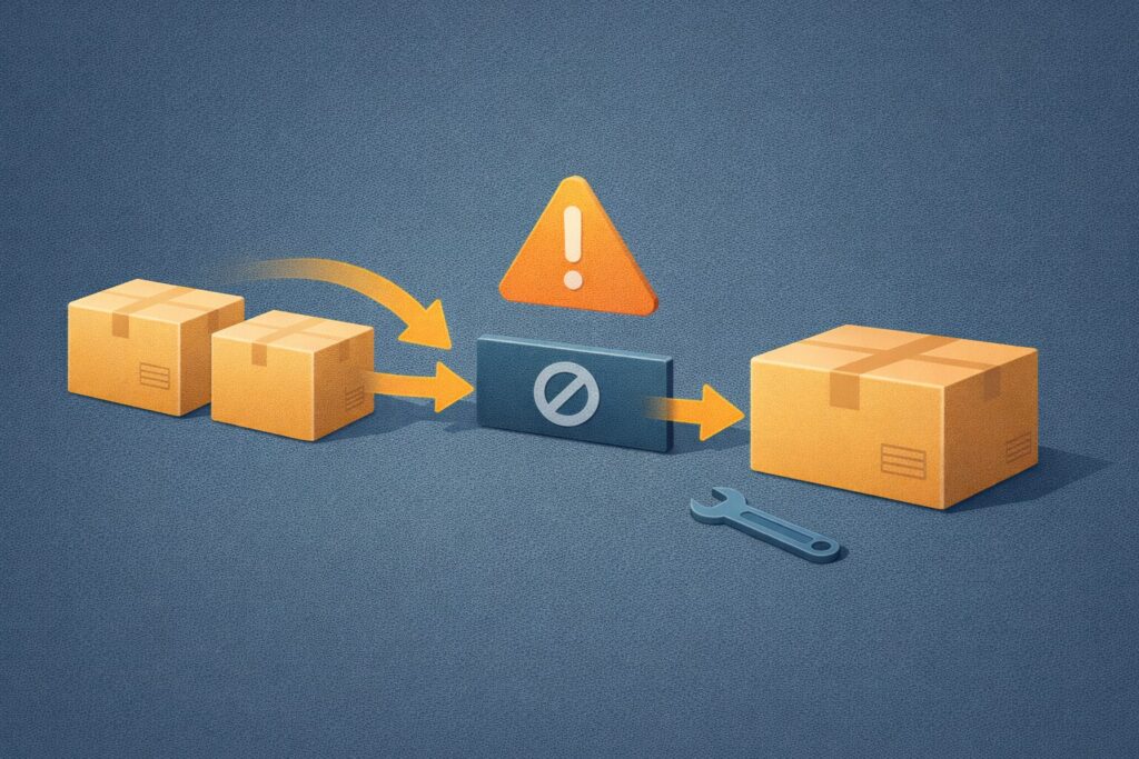 私は、同梱できない時は次の順番で見ます。理由はシンプルで「上から順に潰すほど解決が早い」からです。