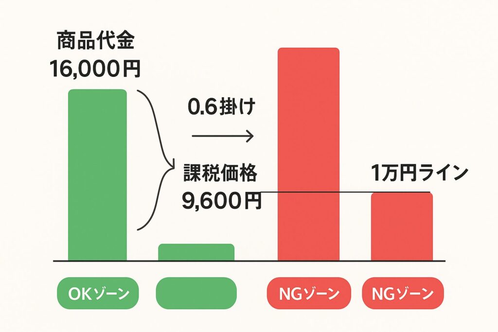 - 課税価格は商品代金の60%が目安で、商品価格ベースで約16,666円以下なら税金ゼロになるケースが多い