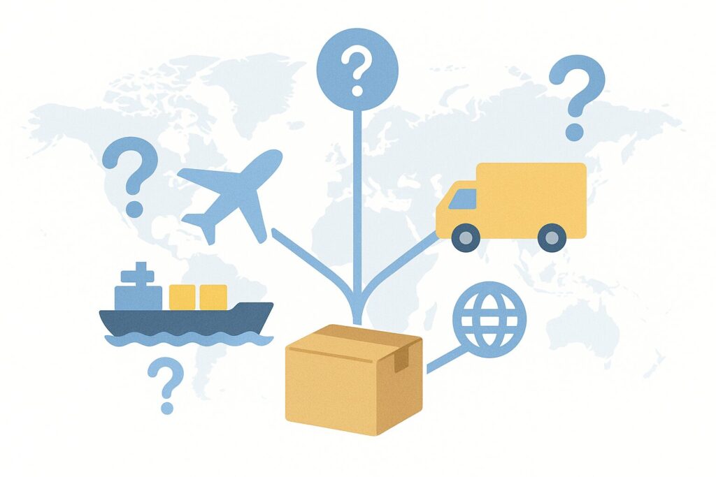 次に多いのが、海外発送まわりの不安です。日本郵便のEMSや国際小包、国際小形包装物、eパケット、または民間のクーリエ(FedEx、DHL、UPSなど)をどう使い分ければいいのか、最初は分かりづらいですよね。