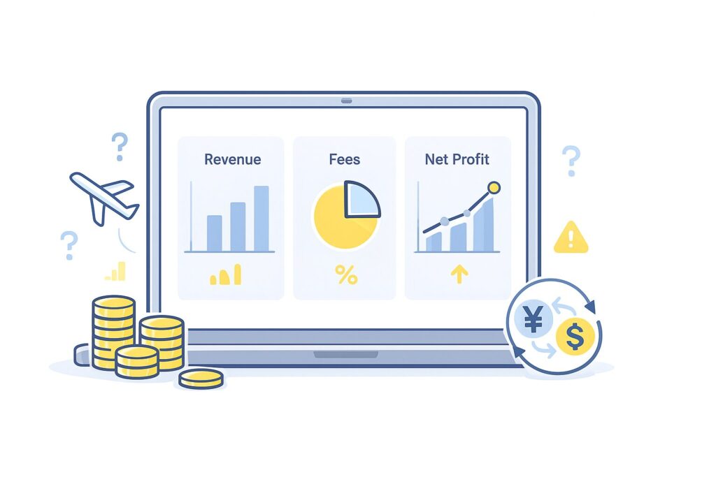 実務的には、「トータルコスト」と「販売価格」をセットで考えます。トータルコストは、仕入れ+送料+手数料+消費税(国内側)などを合計したものです。
