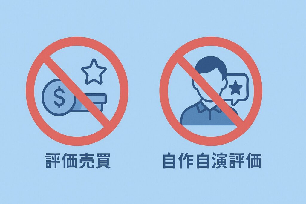 短期で一気に評価を増やしたい気持ちは分かりますが、新規アカウントで1日10件などの動きは、システムからするとかなり不自然に見えます。