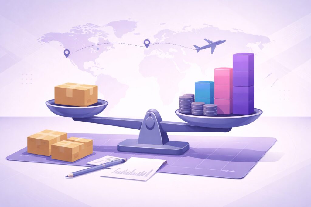 たとえば「返品率が高いカテゴリ」「税関で止まりやすい商材」「高額返送になりやすいクーリエ中心」なら、そもそも利益率を厚くしないと耐えられません。