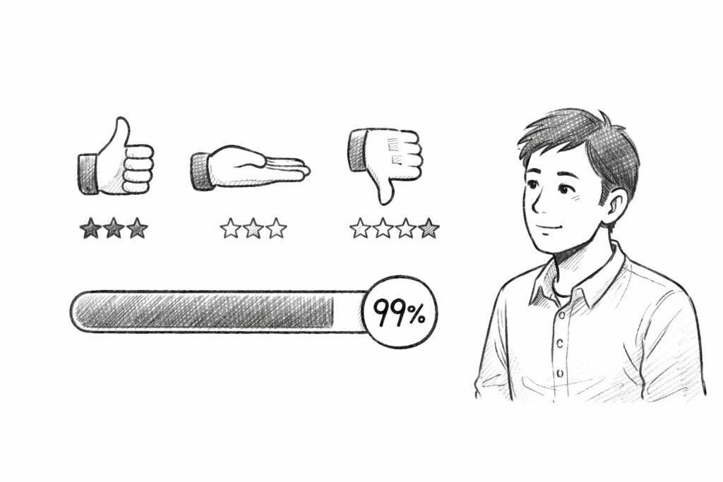 フィードバック総数が増え、ポジティブ率が安定してくるほど、ネガティブ1件の見た目上のダメージは相対的に小さくなります。