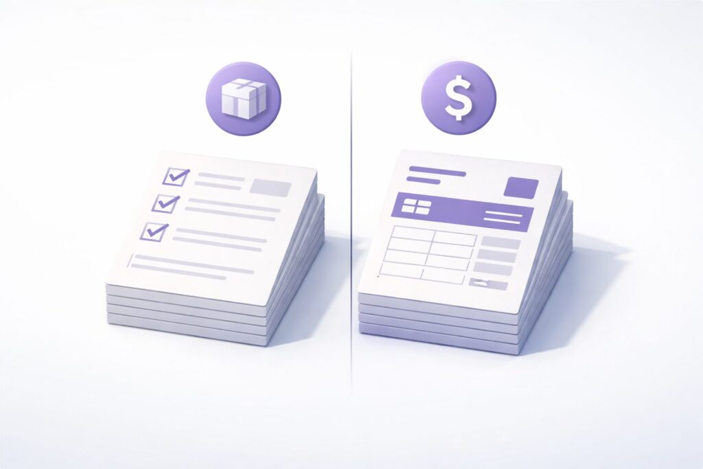 日本語だと混ざりやすいですが、実務では「納品書(パッキングスリップ)」と「インボイス(請求書)」は目的が違います。
