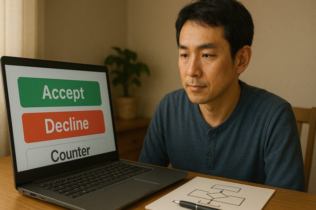 そのゴールに照らして、「このオファーは乗るべきか」「丁寧に断るべきか」「カウンターを返すべきか」を落ち着いて判断していきましょう。