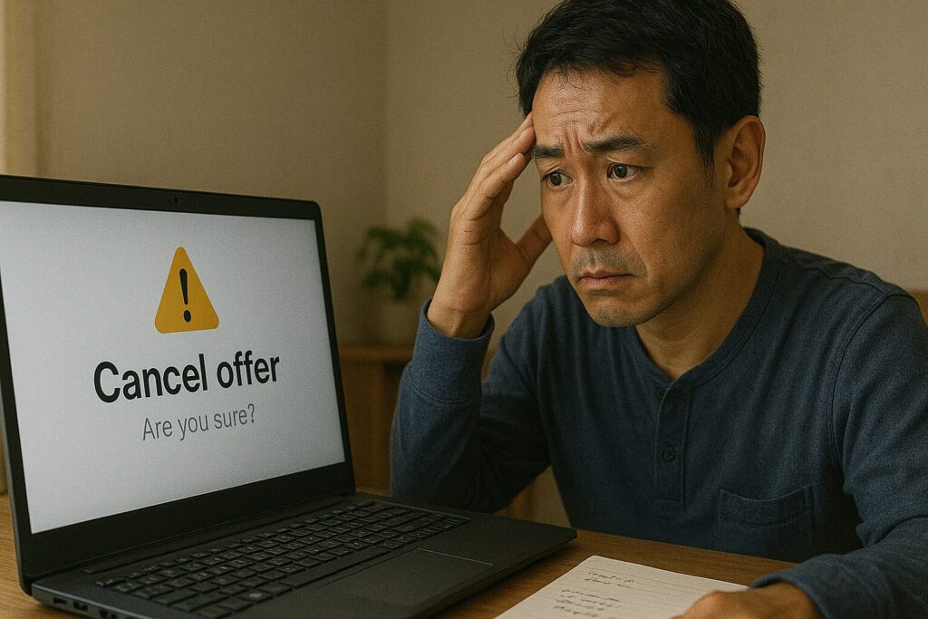 ポイントは、誤ったオファーに気づいたら、できるだけ早くキャンセル操作を行うことです。