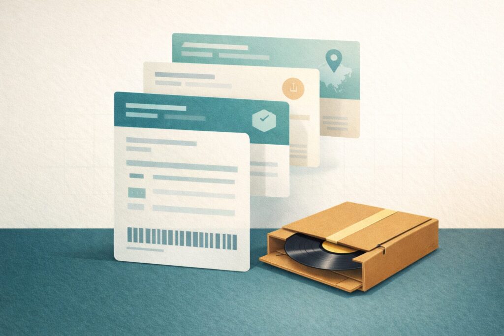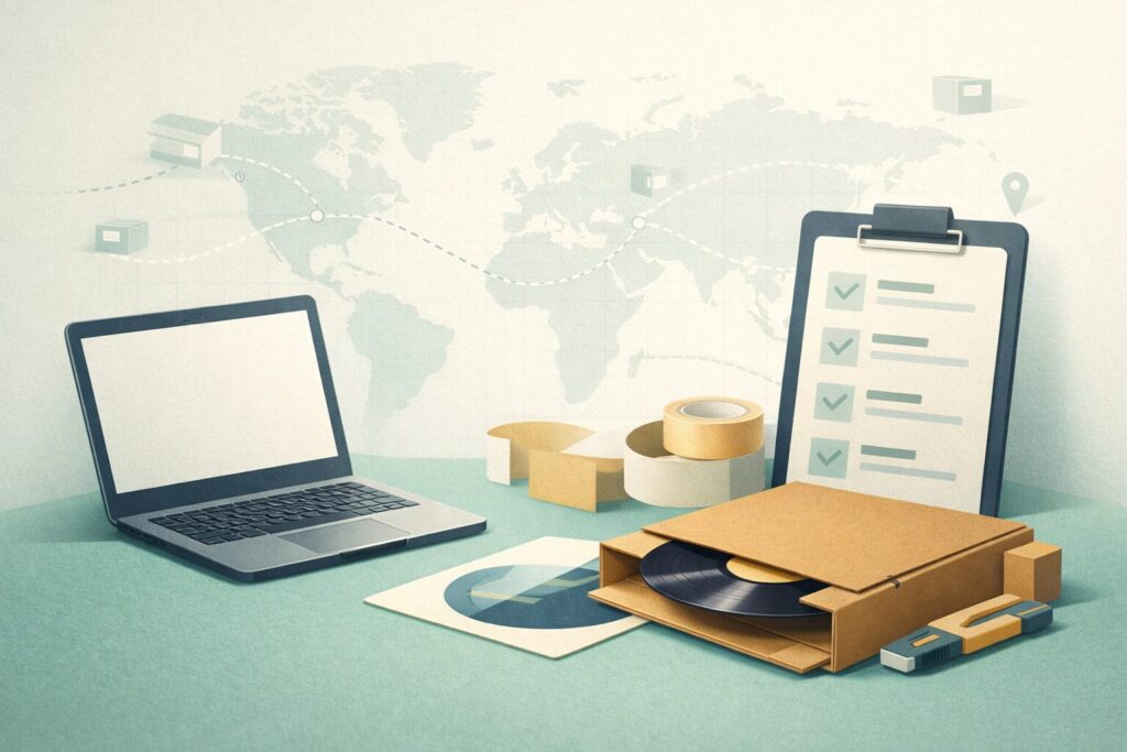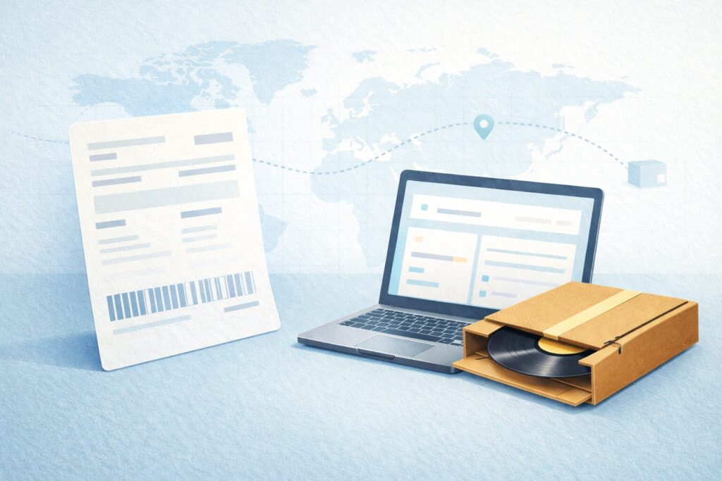 Vinyl recordと明記し、数量・価格を整合させ、可能であればHSコード8523.80を入力するとスムーズになりやすいです。国や運送会社の最新要件は必ず公式情報で確認してください。