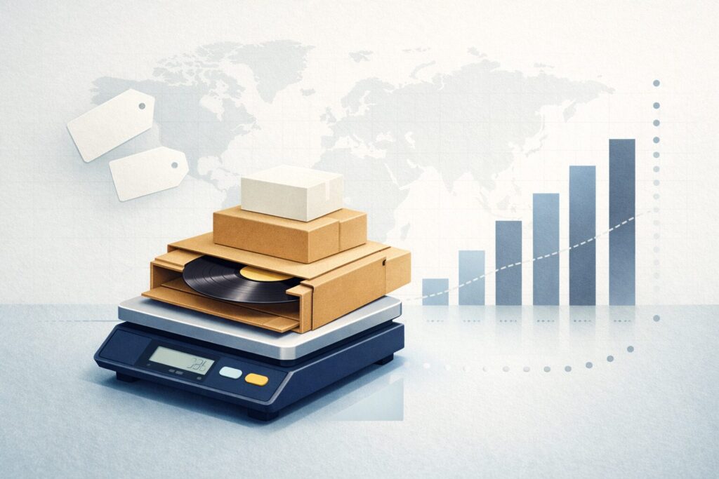 これがレコードと相性が悪い。LPは1枚増えるだけで数百グラム動くことがあるので、同梱で一段上の料金帯に乗った瞬間、利益がドンと削れます。