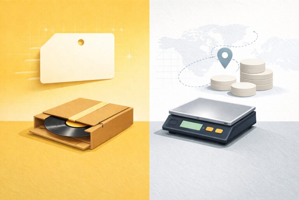 レコードという商材は、薄いけれど重い、そして壊れやすいという独特の特徴があるので、送料設計がそのまま利益率と評価に直結します。