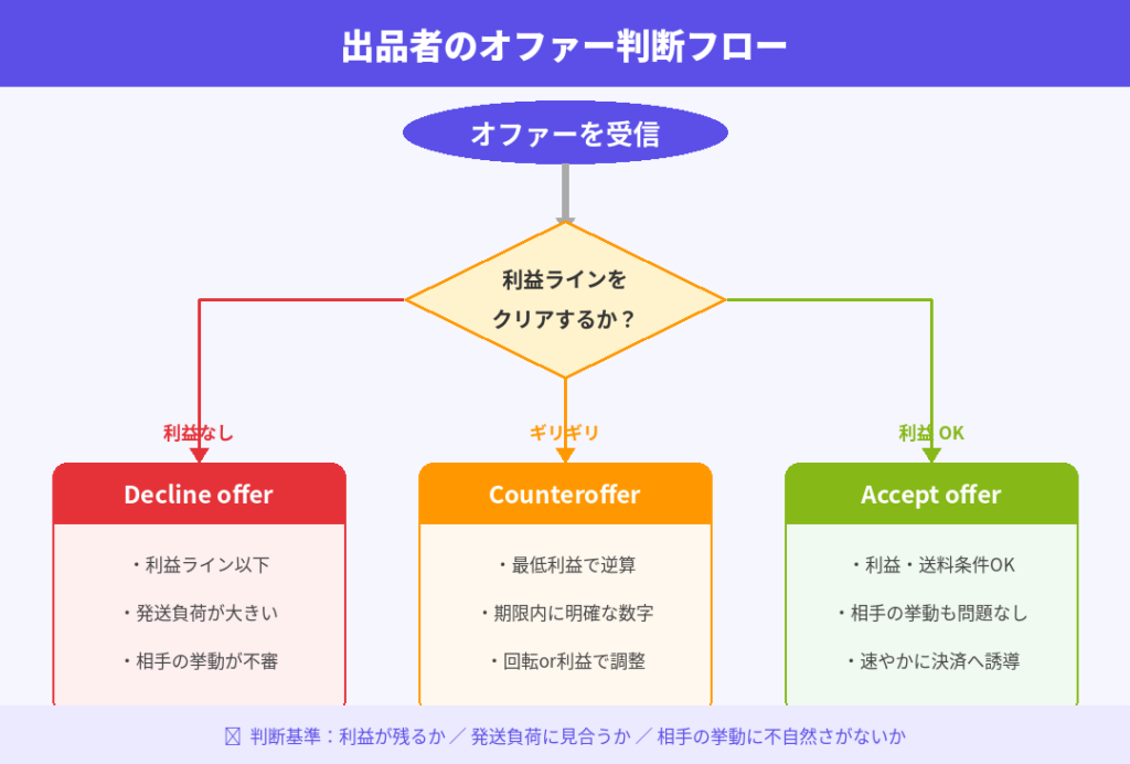 出品者なら、Best Offer、Counteroffer、Offer to buyersを使い分ける。この整理だけでかなり楽になります。
