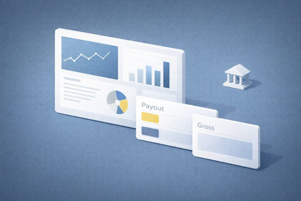 私の感覚では、まずPayout(入金)を起点にして、「そこに至るまでに何が差し引かれているか」を見た方がミスが減ります。